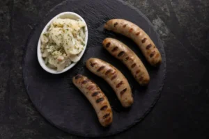 Handgefertigt, traditionelle Handwerkskunst: Jede Wurst wird nach traditioneller Handwerkskunst sorgfältig hergestellt, sodass jeder Bissen authentischen Geschmack bietet.